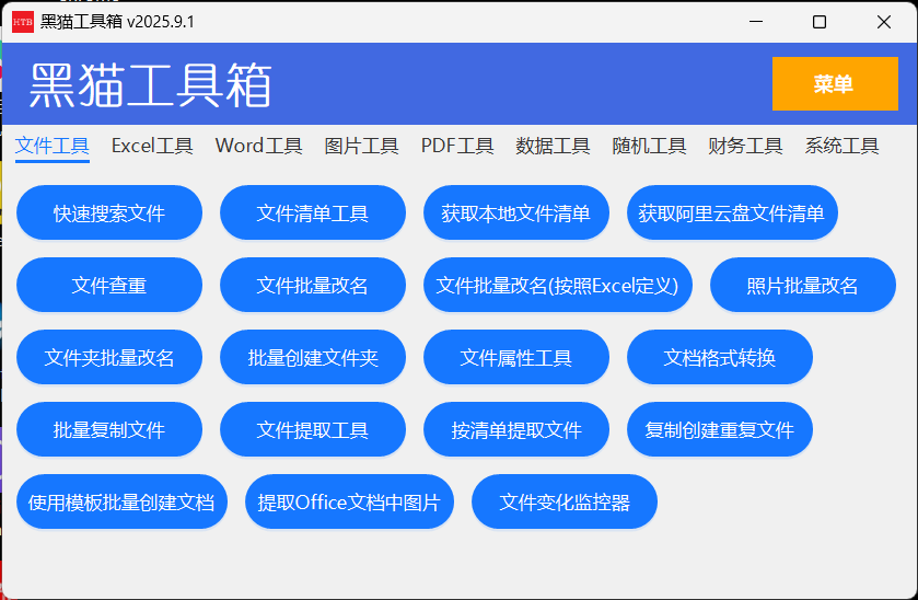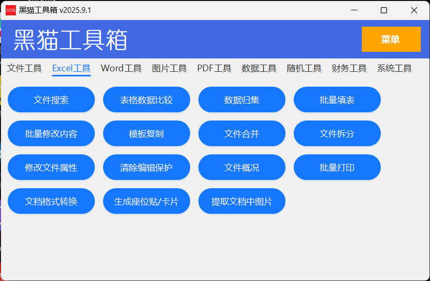 黑猫工具箱为一款功能强大的效率工具软件。适合多种需要批量处理各类文件,以及编辑Excel的场景。主要功能有: